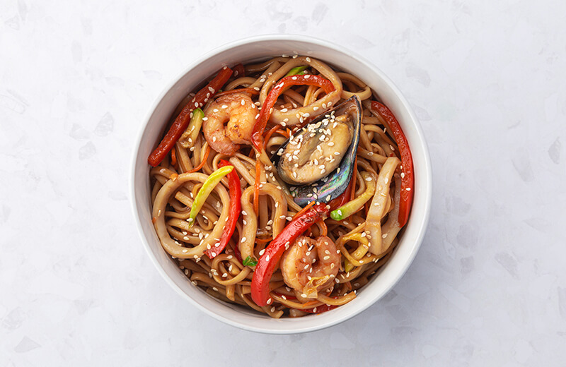 Удон с креветками